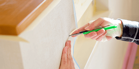 ボード工事で張り付けた下地の上から壁紙を貼っていきます。下地のボードにはどうしてもつなぎ目が出てしまうためにこれを専用パテで平らにし調整します。この調整には高度な技術が必要になってきます。壁の調整が終わったらその上からクロスを貼り付けていきます。